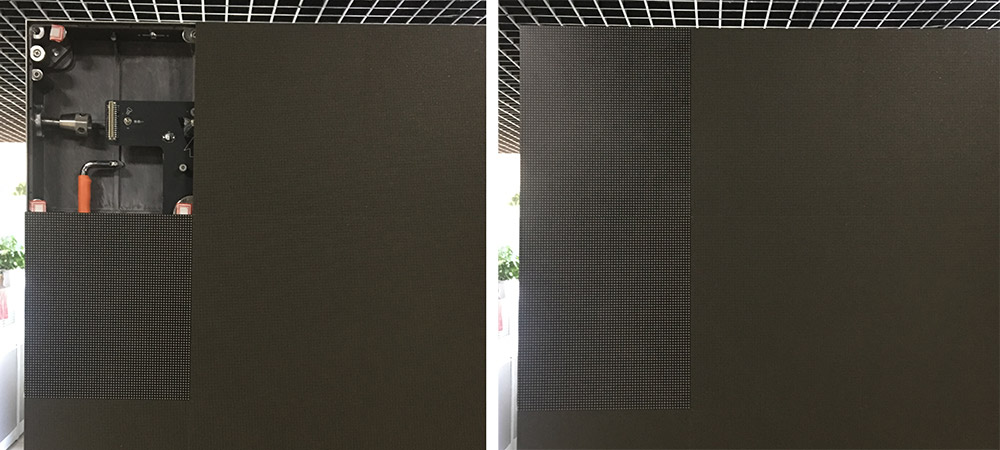 安装箱体时可通过箱体的六方位拼接系统进行智能调节,保证屏体拼接