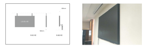 通过专用配件可实现58mm厚的吊装和最薄60mm贴墙安装,不用任何后维护空间,实现完全前维护。
